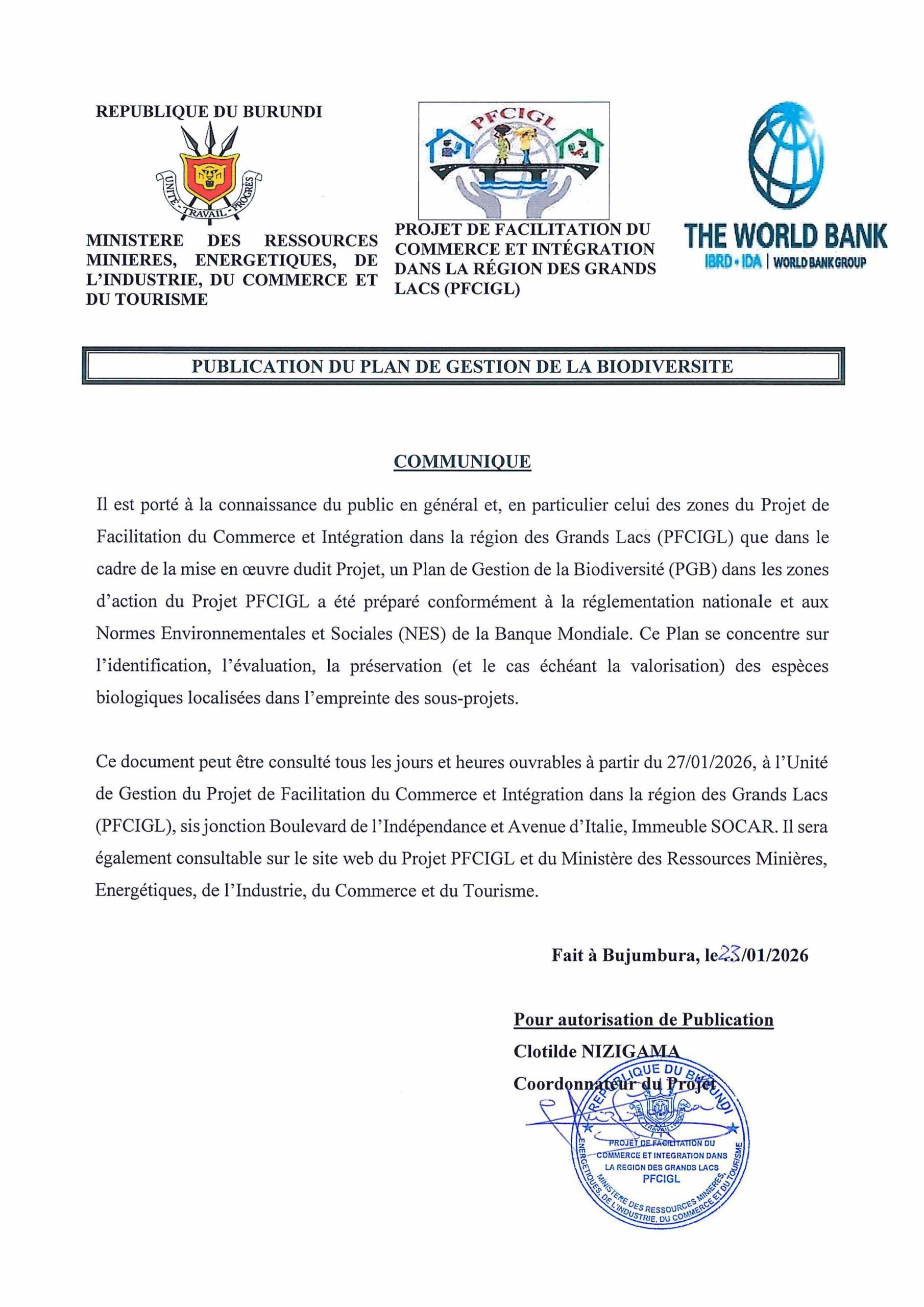 Publication d’un Plan de gestion de la biodiversité