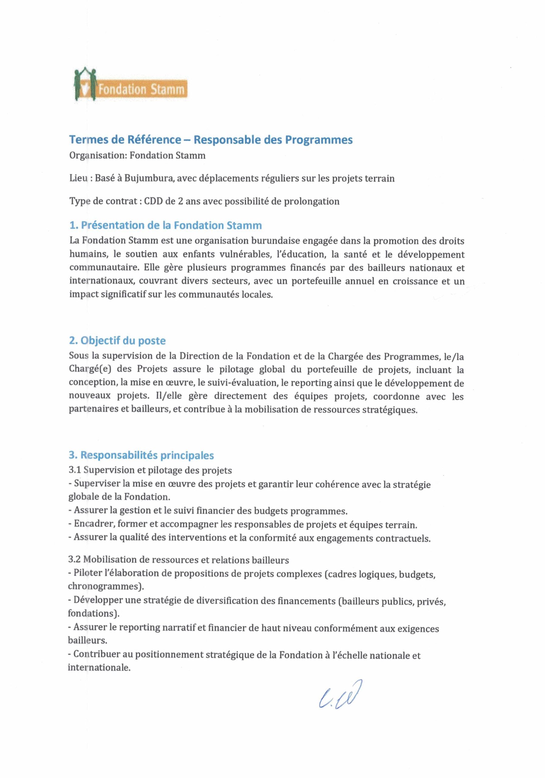 Télécharger les tdrs sur ce lien: Recrutement Responsable des programmes_000014